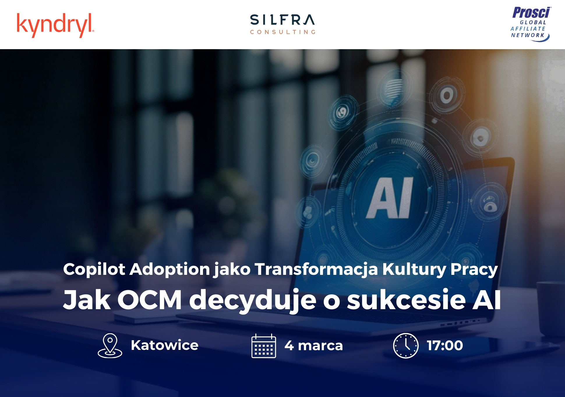 Zapraszamy na kolejne spotkanie z cyklu #ChangeConnect, podczas którego Mateusz Morkisz, Senior Project Manager & Copilot Champion w Kyndryl opowie, dlaczego wdrożenie Copilota należy traktować nie jako projekt IT, ale jako transformację organizacyjną, która wymaga świadomego podejścia do zarządzania zmianą(OCM).